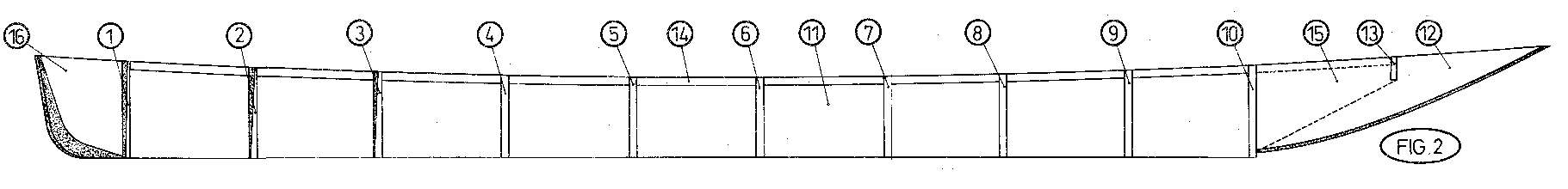 Mit einer Verkleidungsleiste von 1,5x6 mm berechnet man die Zuspitzungsquote, die auf den Spanten Nr. 12-3 und auf den Verbindungsstücken Nr. 16 durchzuführen ist, man ersieht dies auf Figur 3. Man zerlegt die Struktur und baut sie erneut zusammen, indem man sie diesmal mit Harzleim Artikel 1016 zusammenklebt (wer ein schiffstüchtiges Modell erhalten will, sollte Zweiphasenkleber z.B. epoxy Artikel 70515 und plastikbildende Lacke anwenden).