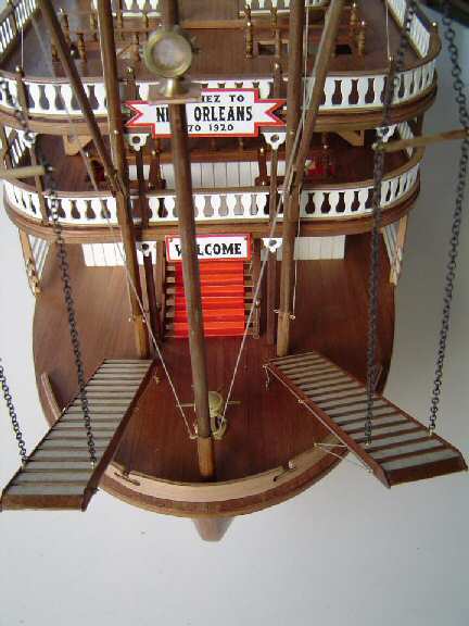 Die Rückwurfstangen der Pleuelstangen Nr. 85 bestehen aus einer geringen Entachsung und werden mit zwei Leisten von 1x3 mm, die an den Flanken befestigt werden, verstärkt. Der Heckspiegel Nr. 86 wird mit weiß lackierten Leisten verkleidet. Am Innern befestigt man zwei schräge Halterungen, um den Heckspiegel zu befestigen.