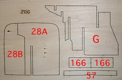 4. Mit dem anderen Teil von 166 den Vorgang wiederholen und auf die Gegenseite des Spants 28 kleben.