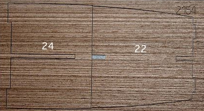 1. Die Spantenteile 23 A und 23 B auf einer flachen Unterlage aneinanderlegen. Eventuelle Unebenheiten mit Holzfeile oder Sandpapier entfernen.