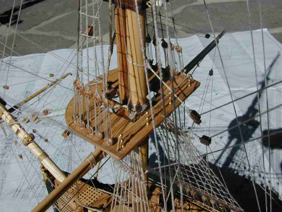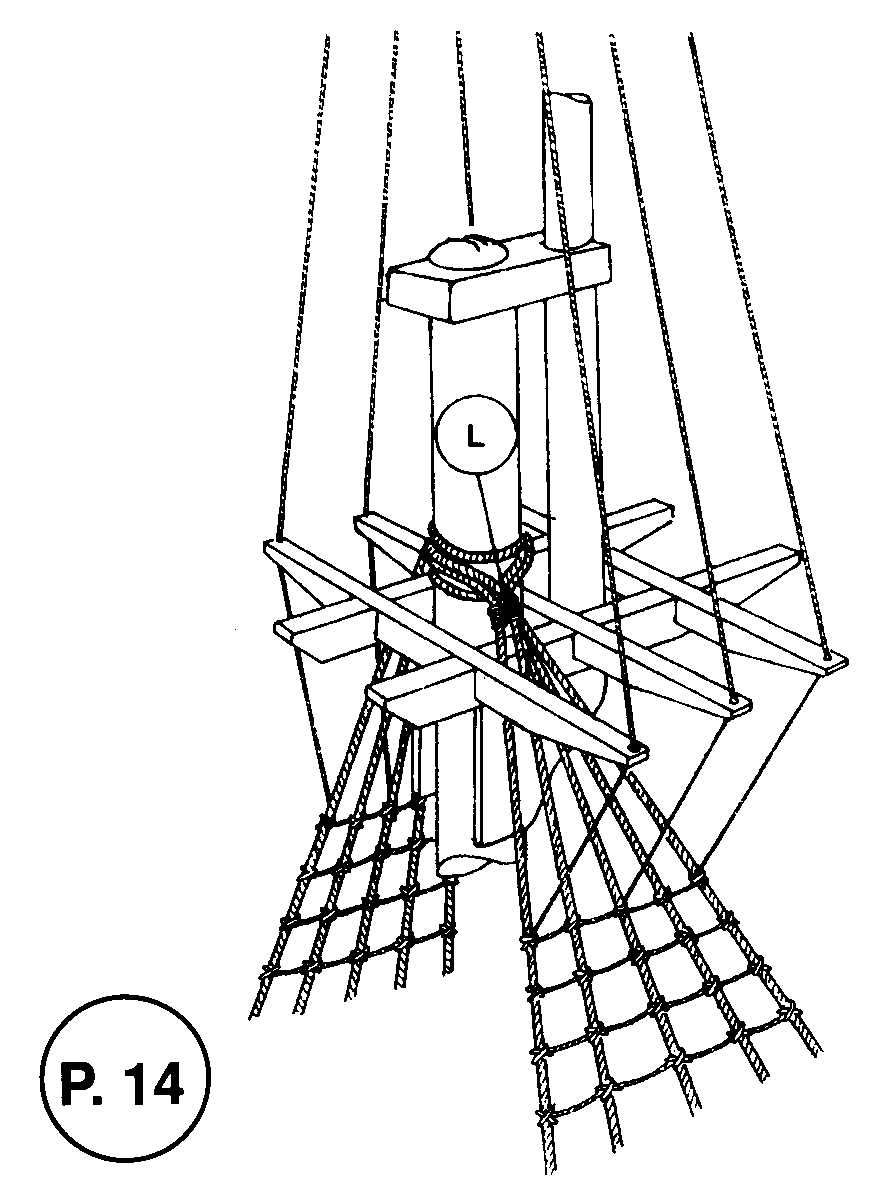 Die Marsstengewanten selbst werden aus Garn 0,75 mm 0 hergestellt. Die Legel um denTop der Marsstenge sind in P 14 dargestellt.