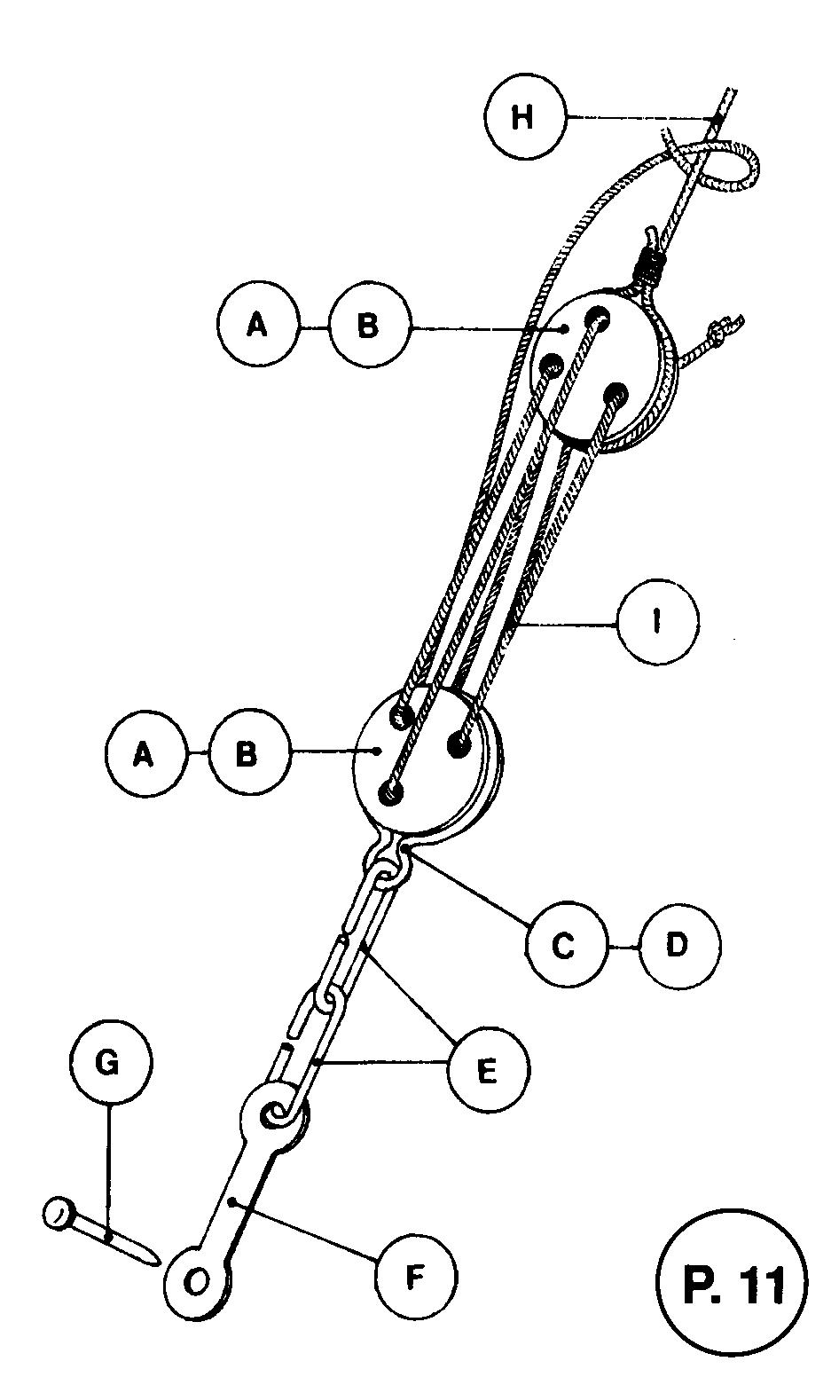 P 11 zeigt die Rüstketten und Want jungfern mit Talje. Die Rüstjungfern (0 5 mm) setzen Sie in die Drahtstropps (0 5 mm) und verbinden diese mit Hilfe von zwei ovalen Kettengliedern mit der Lasche F. Verlöten Sie die Enden der Kettenglieder. Falls Sie Probleme beim Löten haben, können Sie die Glieder auch mit Garn 0,25 mm 0 umwickeln und verleimen.